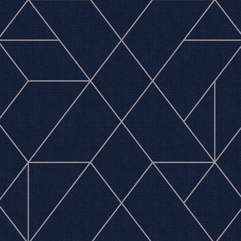 Ngay từ cái nhìn đầu tiên, mẫu giấy dán tường Albany 6804-3 đã thu hút mọi ánh nhìn bởi sắc xanh navy (xanh dương đậm) chủ đạo đầy mê hoặc. Gam màu tối này không chỉ gợi lên cảm giác về sự sang trọng, bí ẩn mà còn mang đến chiều sâu thị giác đáng kinh ngạc. Đây là một tông màu mạnh mẽ, có khả năng tạo ra một bầu không khí ấm cúng nhưng không kém phần hiện đại. Trên nền xanh thẫm đó, những đường kẻ mảnh màu xám bạc xuất hiện như những tia sáng lấp lánh, đan xen vào nhau một cách có chủ ý. Các đường kẻ này tạo thành một mạng lưới họa tiết hình học đương đại, với sự giao cắt khéo léo hình thành nên các khối đa giác (chủ yếu là hình tam giác và tứ giác không đều) được lặp lại một cách có trật tự trên toàn bộ bề mặt. Sự tương phản giữa nền xanh đậm và các đường nét xám bạc sáng màu không chỉ làm nổi bật họa tiết mà còn tạo ra hiệu ứng thị giác 3D nhẹ, khiến bức tường trở nên sống động và có chiều sâu hơn. Các đường kẻ xám bạc này có thể sở hữu một chút ánh kim nhẹ, tùy thuộc vào góc nhìn và nguồn sáng, làm tăng thêm vẻ tinh tế và sang trọng cho sản phẩm. Về cảm nhận xúc giác, bề mặt giấy có thể có một lớp textua tinh tế, mô phỏng hiệu ứng bề mặt vải dệt thô nhẹ nhàng như linen hoặc canvas. Điều này giúp giảm bớt cảm giác lạnh lẽo thường thấy ở các bề mặt phẳng hoàn toàn, thay vào đó là sự ấm áp và gần gũi hơn. Họa tiết hình học có thể được in chìm nhẹ hoặc hơi nổi lên, tạo thêm sự thú vị khi chạm vào, nhưng tổng thể vẫn giữ được độ mịn màng nhất định.