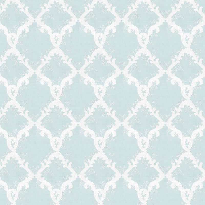 Khi chiêm ngưỡng mẫu giấy này, bạn sẽ ngay lập tức bị mê hoặc bởi sự kết hợp màu sắc và họa tiết đầy tinh tế. Nền giấy sở hữu tông màu xanh ngọc lam rất nhạt (pale aquamarine) hoặc xanh da trời pastel, gợi lên hình ảnh bầu trời trong trẻo hay làn nước dịu mát. Sắc xanh này không chỉ tươi sáng mà còn mang lại cảm giác thoáng đãng, yên bình, là gam màu lý tưởng để xoa dịu tâm hồn sau những giờ phút căng thẳng. Nổi bật trên nền xanh ấy là họa tiết màu trắng tinh khôi, được thiết kế với độ sáng vừa phải (Light), không gây chói mắt mà vẫn đủ sức tạo điểm nhấn. Sự phối hợp giữa xanh nhạt và trắng tạo nên một tổng thể hài hòa, thanh khiết, giúp không gian có cảm giác rộng mở và bừng sáng hơn, đặc biệt hiệu quả với những căn phòng có diện tích khiêm tốn hoặc thiếu ánh sáng tự nhiên.