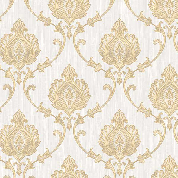 Mẫu Giấy Dán Tường Giá Rẻ Headline 31062 chinh phục người nhìn bởi sự phối hợp màu sắc và họa tiết tinh tế. Tông màu nền là trắng ngà hoặc kem nhạt, tạo cảm giác sáng sủa, thanh lịch và là phông nền hoàn hảo để tôn vinh họa tiết chính. Nổi bật trên nền đó là họa tiết Damask cổ điển với sắc vàng đồng hoặc vàng kem ấm áp. Ánh sắc vàng này không hề chói lóa mà thiên về sự trầm ấm, có thể có chút ánh kim nhẹ, bắt sáng nhẹ nhàng và tăng thêm vẻ quyền quý cho bức tường. Sự kết hợp giữa nền sáng và họa tiết vàng ấm áp giúp mẫu giấy này phù hợp với nhiều điều kiện ánh sáng, làm bừng sáng những góc khuất hoặc tôn lên vẻ đẹp của căn phòng tràn ngập ánh sáng tự nhiên.