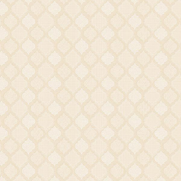 Kiểu họa tiết của mẫu giấy này là dạng hình học đối xứng, lặp lại, thường được gọi là họa tiết Ogee hoặc Arabesque. Đây là một kiểu họa tiết cổ điển, mang hơi hướng phương Đông hoặc Maroc, với các đường cong mềm mại, uyển chuyển tạo thành các ô lưới liên kết với nhau một cách duyên dáng. Các họa tiết này được tạo hình một cách tinh xảo, không phải vân tự nhiên. Đường nét của vân khá mềm mại, liên tục và đều đặn trên toàn bộ bề mặt giấy, tạo nên một hiệu ứng thị giác hài hòa và thu hút. Đặc biệt, bên trong các ô họa tiết và phần nền dường như có một lớp vân giả vải rất mịn. Lớp vân này không chỉ tăng thêm tính thẩm mỹ, tạo cảm giác chiều sâu cho bức tường mà còn giúp giảm bớt sự đơn điệu của bề mặt phẳng, mang đến một vẻ đẹp tinh tế, gần gũi.