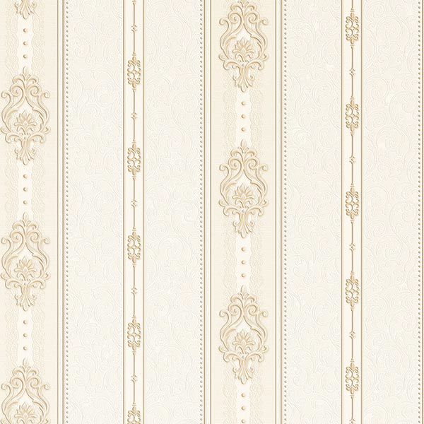 Ấn tượng đầu tiên mà Giấy Dán Tường Giá Rẻ Hot Style 2 6508-4 mang lại là sự thanh lịch và sáng sủa. Sản phẩm sở hữu tông màu chủ đạo là trắng ngà (ivory) hoặc kem nhạt, một gam màu kinh điển mang đến cảm giác sạch sẽ, thoáng đãng và rộng rãi cho mọi căn phòng. Nền trắng ngà này là lớp phông hoàn hảo để làm nổi bật các chi tiết hoa văn. Điểm xuyết trên nền là những họa tiết và đường sọc tinh xảo với ánh sắc vàng kem nhạt hoặc vàng đồng rất nhẹ nhàng. Sự kết hợp màu sắc này không hề gây chói lóa, ngược lại, nó tạo ra một hiệu ứng thị giác ấm áp, sang trọng một cách kín đáo, thể hiện gu thẩm mỹ tinh tế của gia chủ.