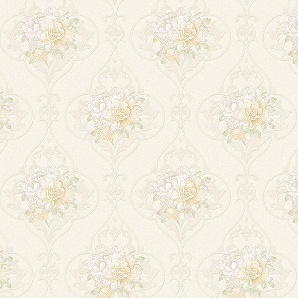 Điểm nhấn nghệ thuật của mẫu Giấy Dán Tường Giá Rẻ Hot Style 2 6513-1 nằm ở họa tiết hoa hồng cổ điển. Những bông hoa này được thể hiện bằng các sắc độ tinh tế của màu vàng kem nhẹ nhàng và trắng kem, xen kẽ một chút phớt hồng cực nhạt ở phần tâm, tạo nên vẻ đẹp tự nhiên, e ấp và đầy sức sống. Phần lá cây đi kèm mang sắc xanh lá cây pastel dịu nhẹ, hoàn thiện bức tranh hoa lá lãng mạn trên nền giấy. Sự phối hợp màu sắc này không quá rực rỡ nhưng đủ để tạo nên chiều sâu và sự duyên dáng. Bên cạnh họa tiết hoa nổi bật, trên nền giấy còn ẩn chứa các họa tiết hoa văn chìm dạng damask cách điệu. Những đường nét uốn lượn, đối xứng này thường có màu kem đậm hơn hoặc xám rất nhạt so với nền chính, tạo thêm lớp lang và sự sang trọng một cách thầm lặng, không phô trương. Chúng mang hơi thở của phong cách cổ điển nhưng đã được cách tân để phù hợp với xu hướng nội thất Giấy Dán Tường Tân Cổ Điển hiện đại, tạo nên một tổng thể hài hòa giữa nét đẹp truyền thống và sự tươi mới.