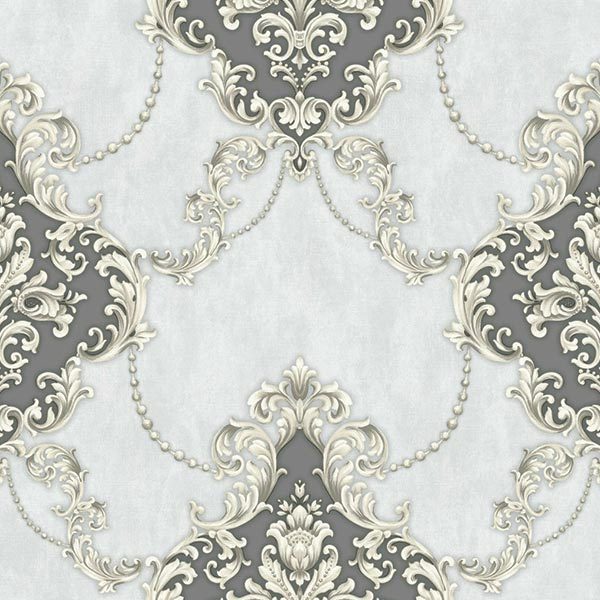 Trên nền sáng ấy, những họa tiết cổ điển như bừng sáng lên với tông màu xám đậm hơn, từ sắc độ trung bình đến tối. Những đường nét uốn lượn mềm mại của lá acanthus, các đường cong xoắn ốc đặc trưng của phong cách Damask hoặc Baroque cách điệu được thể hiện một cách tỉ mỉ và cầu kỳ. Sự tương phản giữa nền sáng và họa tiết tối tạo ra điểm nhấn thị giác mạnh mẽ nhưng không hề gây cảm giác nặng nề hay chói mắt.
