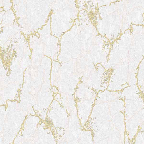 Bên cạnh những đường vân vàng kim nổi bật, có thể cảm nhận được sự hiện diện của các đường vân phụ mờ hơn, có thể mang sắc thái be nhạt hoặc hồng phớt rất nhẹ, chìm tinh tế vào nền trắng. Những đường vân phụ này góp phần tạo nên chiều sâu và sự phức tạp đầy cuốn hút cho họa tiết tổng thể, khiến bề mặt không bị đơn điệu mà trở nên sống động và có hồn hơn. Sự kết hợp của các lớp vân tạo nên một hiệu ứng thị giác đa chiều, thu hút mọi ánh nhìn.