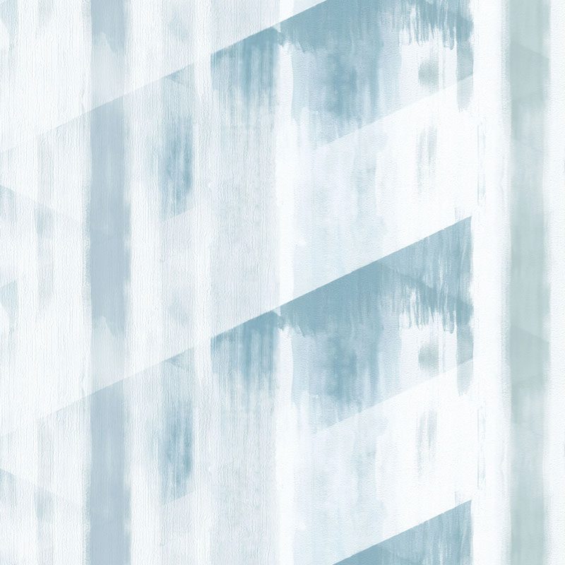 Họa tiết của mẫu Giấy Dán Tường này không đi theo lối mòn của các mẫu Giấy Dán Tường Giả Gỗ hay Giấy Dán Tường Giả Gạch Đá Bê Tông, mà thể hiện một phong cách trừu tượng, tự do và đầy tính nghệ thuật. Các dải màu xanh được thể hiện dưới dạng những vệt màu loang tự nhiên, gợi liên tưởng đến kỹ thuật vẽ màu nước (watercolor) mềm mại hoặc những nét cọ sơn dầu ngẫu hứng, phóng khoáng. Các dải màu này được sắp xếp không theo một quy tắc đối xứng cứng nhắc, mà có sự đan xen giữa các đường sọc dọc và các mảng chéo, tạo thành những hình khối hình học trừu tượng, mềm mại. Sự chồng lớp tinh tế giữa các mảng màu, với sắc độ đậm nhạt khác nhau, tạo nên chiều sâu và sự chuyển động nhẹ nhàng cho bức tường, khiến nó không bị đơn điệu hay nhàm chán. Đặc biệt, với những họa tiết trừu tượng này, sản phẩm cũng có thể được xếp vào nhóm Giấy Dán Tường Kẻ Ô theo một cách hiểu hiện đại, nơi các đường nét giao thoa tạo nên những mảng màu độc đáo.