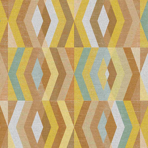 Họa tiết của Giấy Dán Tường Giá Rẻ Shades 752303 là một thiết kế hình học (geometric) đầy ấn tượng và có chủ đích. Các khối hình thoi và dải màu song song được sắp xếp một cách nhịp nhàng, tạo thành các cấu trúc lặp lại gợi liên tưởng đến hình ảnh chữ X hoặc những hình thoi lớn được lồng ghép vào nhau. Các đường nét trong họa tiết thẳng và rõ ràng, mang lại cảm giác về sự ngăn nắp, trật tự và cấu trúc cho bức tường. Tuy nhiên, sự đa dạng về màu sắc trong từng khối hình và sự chuyển tiếp mềm mại giữa các sắc độ đã làm dịu đi tính kỷ hà khô cứng, tạo nên một tổng thể vừa năng động hiện đại, vừa phảng phất nét hoài cổ đặc trưng của phong cách retro những thập niên trước. Bề mặt của giấy dán tường có thể là loại mờ mịn hoặc có kết cấu dệt nhẹ, giúp giảm thiểu sự phản chiếu ánh sáng mạnh, góp phần tăng thêm cảm giác ấm cúng và chiều sâu cho không gian.