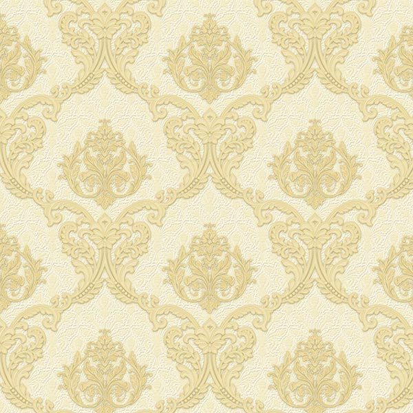 Mẫu giấy dán tường này sở hữu một tông màu vàng kem (ivory yellow) làm chủ đạo, một gam màu nền nã, thanh lịch và có khả năng bắt sáng tốt. Sắc vàng kem này không chỉ mang lại cảm giác ấm áp, dễ chịu mà còn giúp không gian như được mở rộng, thoáng đãng hơn, đặc biệt phù hợp với những khu vực thiếu sáng hoặc có diện tích khiêm tốn. Trên nền vàng kem dịu mắt đó, các họa tiết Damask cổ điển được tái hiện bằng một sắc vàng đậm hơn, tạo nên sự tương phản đủ để thu hút ánh nhìn mà không gây cảm giác nặng nề. Điều đặc biệt là các họa tiết này có thể phảng phất chút ánh kim nhẹ nhàng khi có ánh sáng tự nhiên hoặc đèn chiếu vào, tạo nên hiệu ứng lấp lánh tinh tế, làm nổi bật vẻ đẹp sang trọng và quý phái của hoa văn. Sự kết hợp màu sắc này mang đến một tổng thể hài hòa, phù hợp với những không gian cần sự yên tĩnh, thư thái nhưng vẫn giữ được nét quý phái và ấn tượng.