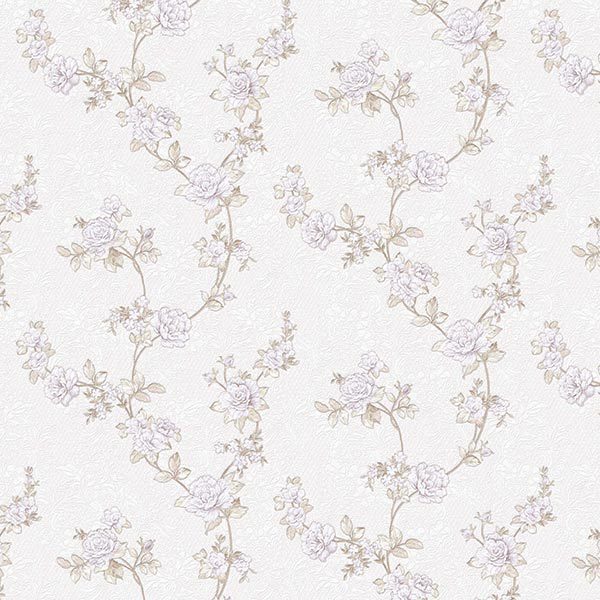 Khi chiêm ngưỡng Giấy Dán Tường Giá Rẻ Shades 752701, bạn sẽ ngay lập tức bị cuốn hút bởi sự dịu dàng và thanh thoát toát ra từ từng đường nét họa tiết. Sản phẩm sở hữu một tông màu nền chủ đạo là trắng ngà hoặc kem rất nhạt, tạo nên một bức phông nền sáng sủa, thoáng đãng, giúp mở rộng không gian và mang lại cảm giác sạch sẽ, tinh khôi. Trên nền màu nền nã ấy, nổi bật lên họa tiết hoa hồng leo được thể hiện một cách mềm mại và đầy duyên dáng. Các bông hoa hồng mang sắc tím phớt (lavender/lilac) nhẹ nhàng kết hợp với màu trắng tinh khôi, tạo nên sự pha trộn màu sắc vô cùng nữ tính và thơ mộng. Xen kẽ với những bông hoa lớn là những nụ hoa và cụm hoa nhỏ, tô điểm thêm sự sinh động và tự nhiên cho bức tranh tường.