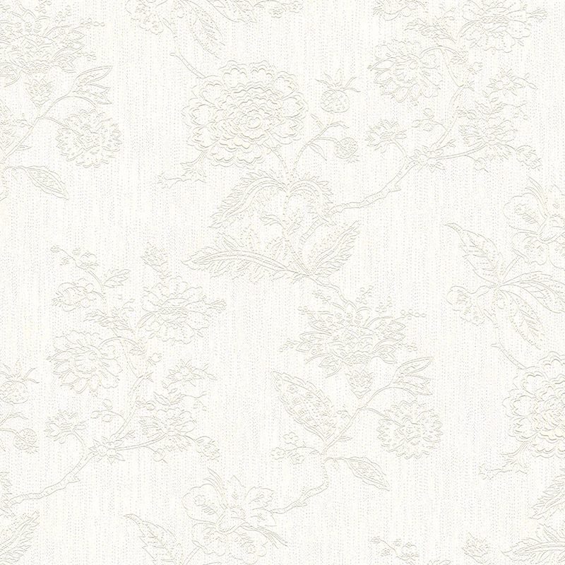Điểm nhấn nghệ thuật làm nên sức hút của Giấy Dán Tường Giá Rẻ Squer 35051 nằm ở họa tiết hoa lá cổ điển được dập nổi kỳ công trên toàn bộ bề mặt. Những cụm hoa lớn đang độ khoe sắc xen kẽ với những nụ hoa còn e ấp và những cành lá uốn lượn mềm mại, tạo nên một bức tranh tường sống động và duyên dáng. Điều đặc biệt là họa tiết này được thể hiện “tone-sur-tone” cùng màu nền trắng ngà, tạo ra hiệu ứng thị giác tinh tế và sang trọng. Thay vì nổi bật rực rỡ, họa tiết dập nổi mang đến chiều sâu và kết cấu cho bức tường một cách kín đáo, không gây cảm giác rối mắt hay nặng nề.