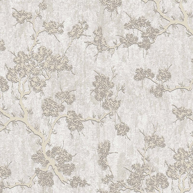 Điểm nhấn đặc biệt của mẫu giấy này nằm ở họa tiết cành lá cách điệu. Những cành cây mảnh mai, gợi liên tưởng đến nét vẽ tối giản hoặc hình ảnh cành thông, cành lá kim, được thể hiện bằng màu be nhạt đến nâu nhạt. Gam màu nâu nhạt này là một lựa chọn trung tính, ấm áp, tạo sự cân bằng hoàn hảo với nền sáng. Họa tiết lá cây được tạo hình bằng những nét nhỏ, chi tiết, mang đến cảm giác xum xuê, sinh động nhưng không hề rối mắt. Vân hoa lá mềm mại, uyển chuyển, được sắp xếp một cách có chủ ý, tạo nên một pattern lặp lại nhịp nhàng, rất phù hợp để Trang Trí Tường trên những mảng tường lớn, tạo điểm nhấn thị giác.