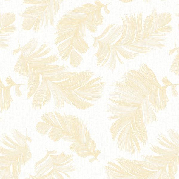 Điểm nhấn độc đáo của mẫu giấy này nằm ở các họa tiết lông vũ hoặc lá cây cách điệu, được thể hiện bằng gam màu vàng kem nhạt. Ánh sắc vàng này không hề chói chang hay rực rỡ, mà lại dịu dàng, ấm áp và mềm mại, như ánh nắng ban mai nhẹ nhàng chiếu rọi. Sự kết hợp giữa trắng và vàng kem tạo nên một bảng màu Giấy Dán Tường Kem tươi sáng, nhẹ nhàng và rất dễ chịu cho thị giác. Các họa tiết được vẽ với đường nét thanh mảnh, uyển chuyển, gợi lên sự bay bổng, tự do và gần gũi với thiên nhiên. Chúng được sắp xếp ngẫu nhiên trên bề mặt giấy, không tuân theo một quy luật cố định, tạo nên vẻ sinh động, phóng khoáng và có chiều sâu nhờ sự chồng lớp nhẹ nhàng. Mật độ họa tiết vừa phải, không quá dày đặc, giúp giữ được sự thoáng đãng và không gây rối mắt cho tổng thể bức tường.