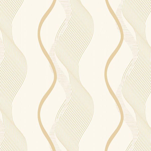 Điểm độc đáo của Giấy Dán Tường Giá Rẻ Star City 99382 nằm ở kiểu họa tiết trừu tượng đầy tính nghệ thuật. Thay vì mô phỏng các vật liệu tự nhiên như gỗ hay đá, sản phẩm sử dụng những dải lượn sóng dọc uyển chuyển. Các đường cong này được thiết kế có chủ ý, tạo nên một dòng chảy thị giác mềm mại, không hề khô cứng. Họa tiết bao gồm những dải sóng chính dày dặn hơn, màu vàng be, là tâm điểm của thiết kế. Xen kẽ và đồng hành cùng chúng là những cụm đường kẻ mảnh hơn, cũng uốn lượn theo hình sóng, tạo ra hiệu ứng về chiều sâu và kết cấu. Sự đan xen này mang đến cảm giác về chuyển động nhẹ nhàng, như những dải lụa đang bay hoặc những gợn sóng lăn tăn trên mặt nước. Tổng thể họa tiết mang hơi hướng hiện đại, tối giản nhưng không đơn điệu, tạo cảm giác thư thái và dễ chịu cho người nhìn.