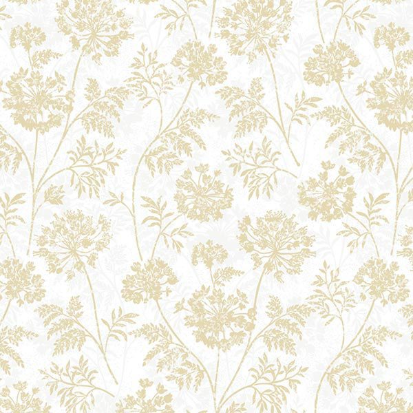 Điểm nhấn nghệ thuật của mẫu giấy này nằm ở họa tiết hoa lá được cách điệu tinh xảo. Các cụm hoa tròn trịa, mềm mại, gợi nhớ đến vẻ đẹp e ấp của hoa cẩm tú cầu hay sự mộc mạc của hoa đồng nội, xen kẽ với những cành lá mảnh mai, uốn lượn duyên dáng. Họa tiết này được thể hiện bằng tông màu vàng kem nhạt hoặc be nhạt, một sắc thái không quá chói chang nhưng đủ để tạo nên sự nổi bật nhẹ nhàng trên nền trắng ngà. Sự kết hợp màu sắc này mang đến một bảng màu hài hòa, dễ chịu, tràn đầy sức sống nhưng vẫn giữ được nét trang nhã.