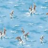 Kiểu họa tiết trên giấy không phải là vân gỗ hay các họa tiết hình học cứng nhắc, mà là một thiết kế mang đậm tính trang trí, gợi nhớ đến những câu chuyện cổ tích hoặc phong cách minh họa dành cho trẻ em. Các họa tiết được bố trí ngẫu nhiên nhưng vẫn giữ được sự cân đối, tạo ra một bức tranh thiên nhiên thu nhỏ, mềm mại và duyên dáng trải dài trên bức tường. Nét vẽ đơn giản, không cầu kỳ, mang lại cảm giác thân thiện và gần gũi. Bề mặt của giấy dán tường được cảm nhận là loại mờ mịn (matte finish) hoặc có thể có độ sần nhẹ, giúp hạn chế sự phản chiếu ánh sáng mạnh, tạo chiều sâu cho bức tường và tăng tính thẩm mỹ khi chạm vào.