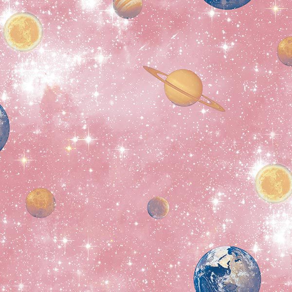 Nhìn vào mẫu Giấy Dán Tường Giá Rẻ The One 6838-1, bạn sẽ ngay lập tức bị thu hút bởi bầu không khí thần tiên, ngập tràn ánh sáng và màu sắc. Nền giấy mang sắc hồng phấn nhẹ nhàng, không chói gắt mà mang lại cảm giác thư thái, ấm áp và rất đỗi mộng mơ. Trên nền trời hồng ấy, các họa tiết vũ trụ hiện lên sống động: nào là hành tinh xanh biếc như Trái Đất thân quen, hành tinh màu vàng rực rỡ như Sao Kim hay Sao Mộc, hành tinh nâu đỏ gợi nhớ Sao Hỏa, và cả những hành tinh với vành đai đặc trưng của Sao Thổ. Chúng được vẽ cách điệu, tròn trịa và đáng yêu, phân bố ngẫu nhiên tạo nên một bức tranh thiên văn vui mắt. Xen kẽ giữa các hành tinh là vô vàn ngôi sao lớn nhỏ, có những đốm sáng vàng rực, có những tia sáng trắng bạc lấp lánh như bụi sao, tạo hiệu ứng chiều sâu và sự lung linh huyền ảo. Sự kết hợp màu sắc hài hòa giữa hồng, vàng, xanh, cam, nâu và trắng bạc không chỉ làm cho bức tường trở nên nổi bật mà còn khơi gợi trí tưởng tượng, đặc biệt là với trẻ nhỏ.