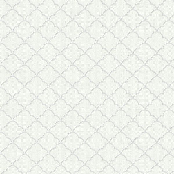 Họa tiết của mẫu Giấy Dán Tường này là một điểm nhấn nghệ thuật đáng chú ý. Nó thuộc kiểu họa tiết hình học lặp lại, được cách điệu một cách mềm mại và đối xứng. Cụ thể, họa tiết gợi liên tưởng đến dạng vảy cá (scallop) hoặc hình cánh cung/đèn lồng (ogee/quatrefoil), được xếp lớp chồng lên nhau một cách đều đặn. Điều này tạo ra một hiệu ứng thị giác liên tục, nhịp nhàng và đầy cuốn hút trên bề mặt tường. Đường nét của họa tiết thanh thoát, uyển chuyển, không hề có góc cạnh sắc nét, mang đến cảm giác duyên dáng và phảng phất nét cổ điển. Đây là một kiểu họa tiết trang trí thuần túy, không mô phỏng vân tự nhiên, với mục đích rõ ràng là làm đẹp và tạo điểm nhấn cho không gian. Nhìn từ xa, bề mặt giấy có thể cảm nhận được một kết cấu tinh tế, có thể hơi sần nhẹ hoặc có độ mịn mờ, góp phần tăng thêm sự sang trọng cho sản phẩm.