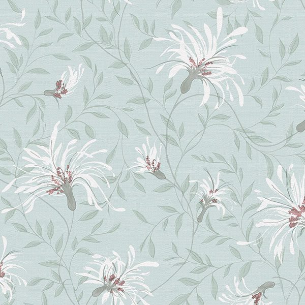 Ngay từ cái nhìn đầu tiên, mẫu giấy dán tường V-Concept 7936-2 đã gây ấn tượng bởi tông màu nền xanh ngọc nhạt (Light Teal/Aqua) dịu mát. Đây là gam màu mang đến cảm giác yên bình của biển cả và sự tươi mới của thiên nhiên, rất phù hợp để tạo một bầu không khí thư giãn trong nhà. Trên nền xanh thanh thoát ấy, họa tiết hoa lá cách điệu hiện lên đầy duyên dáng. Những bông hoa lớn được khắc họa với cánh màu trắng ngà (Off-white) mềm mại, thon dài, như đang nhẹ nhàng bung nở, tạo điểm nhấn trang nhã và sáng sủa. Nhụy hoa được chấm phá khéo léo bằng những hạt nhỏ màu hồng đất nhạt (Dusty Rose), thêm vào một chút ấm áp và lãng mạn, phá vỡ sự đơn điệu của tông màu lạnh. Cuống hoa và những cành lá mảnh mai uốn lượn, sử dụng gam màu xám xanh nhạt (Light Sage Green) với các sắc độ đậm nhạt khác nhau, mang lại cảm giác chiều sâu và sự sống động tự nhiên cho tổng thể bức tranh tường. Bề mặt giấy không hoàn toàn phẳng lì mà sở hữu một lớp vân sần nhẹ, gợi nhớ đến chất liệu vải linen hay giấy mỹ thuật cao cấp, tạo cảm giác chạm tinh tế và cao cấp hơn so với mức giá. Tổng thể họa tiết mang hơi hướng cổ điển, lãng mạn nhưng không quá cầu kỳ, giữ được nét thanh lịch và uyển chuyển. Đây là mẫu giấy hoàn hảo cho những ai yêu thích phong cách nội thất nhẹ nhàng, thoáng đãng như vintage, shabby chic, Scandinavian hoặc farmhouse. Gam màu sáng chủ đạo còn giúp không gian trông rộng rãi và sáng sủa hơn đáng kể, đặc biệt hữu ích cho những căn phòng có diện tích khiêm tốn hoặc thiếu ánh sáng tự nhiên.