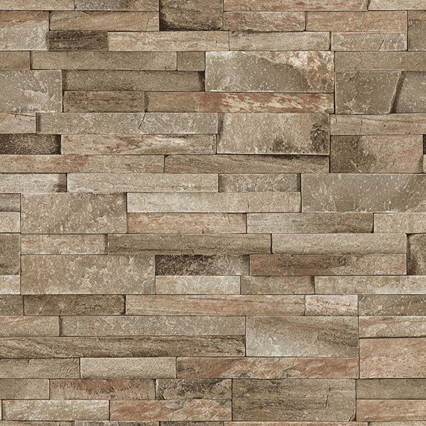 Về kiểu vân, Giấy Dán Tường Giá Rẻ V-Concept 7943-1 tái hiện một cách chân thực họa tiết đá xếp lớp (stacked stone). Các viên đá được mô phỏng có hình chữ nhật với kích thước (chiều dài, chiều rộng) và độ dày mỏng khác nhau, được xếp chồng lên nhau theo chiều ngang một cách ngẫu nhiên và bất quy tắc, mô phỏng hoàn hảo kỹ thuật ốp đá tự nhiên. Các đường ron (mạch vữa) giữa các viên đá được thiết kế rất mờ nhạt hoặc gần như không có, tạo cảm giác các phiến đá được xếp khít vào nhau, nhấn mạnh kết cấu và sự liền mạch, tự nhiên của bề mặt đá. Bề mặt của từng viên đá được in với các chi tiết vân đá cực kỳ tinh xảo, thể hiện rõ những đường nứt nhỏ li ti, sự biến đổi màu sắc do thành phần khoáng chất khác nhau, và các vết phong hóa nhẹ nhàng qua thời gian. Mặc dù về mặt vật lý, Giấy Dán Tường có thể có bề mặt phẳng mịn hoặc có chút vân nổi nhẹ (embossed) tùy thuộc vào công nghệ sản xuất, hiệu ứng thị giác 3D mà nó mang lại là một bức tường đá sần sùi, có chiều sâu và độ lồi lõm rõ rệt, tạo cảm giác chân thực đáng kinh ngạc khi nhìn từ xa và ngay cả khi lại gần.