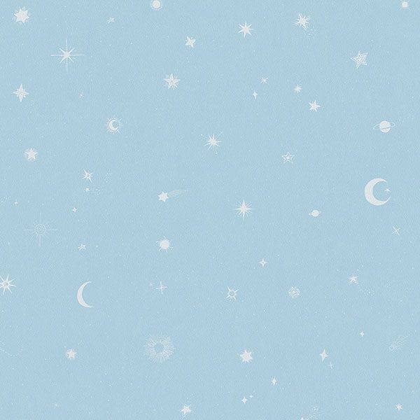 Điểm nhấn của Giấy Dán Tường Giá Rẻ V-Concept 7949-1 nằm ở các họa tiết vũ trụ được thể hiện một cách đáng yêu và sáng tạo. Trên nền xanh baby blue dịu mắt, bạn sẽ thấy những ngôi sao với nhiều kích thước và kiểu dáng khác nhau – từ ngôi sao 4 cánh, 5 cánh, 8 cánh cho đến những ngôi sao lấp lánh tưởng tượng. Bên cạnh đó là hình ảnh mặt trăng lưỡi liềm duyên dáng, các hành tinh nhỏ xinh và những vệt sao băng vụt qua, tất cả đều được vẽ bằng màu trắng tinh khôi hoặc trắng ngà. Sự kết hợp hài hòa giữa nền xanh pastel và các họa tiết trắng tạo nên một tổng thể tươi sáng, nhẹ nhàng, rất phù hợp để tạo điểm nhấn ấn tượng cho các không gian cần sự bay bổng và kích thích trí tưởng tượng.