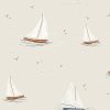 Mẫu Giấy Dán Tường Giá Rẻ V-Concept 7950-1 không đi theo kiểu vân gỗ hay vân đá truyền thống, mà sử dụng một họa tiết tạo hình độc đáo lấy chủ đề từ biển cả. Họa tiết chính là hình ảnh những chiếc thuyền buồm nhỏ đang nhẹ nhàng lướt trên mặt nước. Các hình ảnh này được bố trí lặp lại trên toàn bộ bề mặt giấy một cách ngẫu hứng nhưng vẫn đảm bảo sự cân đối, mang tính trang trí cao. Các chi tiết phụ như sóng nước và chim biển được thể hiện bằng những đường nét đơn giản, mềm mại, không quá cầu kỳ nhưng đủ sức gợi tả không khí trong lành, khoáng đạt của đại dương. Đây là kiểu họa tiết mang tính minh họa, khơi gợi trí tưởng tượng và tạo nên nét riêng biệt cho không gian.