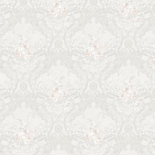 Kiểu vân của Giấy Dán Tường Giá Rẻ Zen 28072 là một minh chứng cho vẻ đẹp vượt thời gian của phong cách cổ điển và tân cổ điển. Họa tiết mang đậm nét Damask đặc trưng, với các cụm hoa văn đối xứng được bố cục tỉ mỉ và lặp lại nhịp nhàng trên toàn bộ bề mặt giấy. Trung tâm của họa tiết là những khung trang trí uốn lượn mềm mại, được vẽ nên từ những đường cong duyên dáng. Bên trong các khung này là những chùm hoa hồng và các loại hoa lá nhỏ khác, được thể hiện một cách chi tiết, sống động. Các đường nét của họa tiết có sự biến đổi tinh tế về độ dày mỏng, tạo cảm giác như được chạm khắc hoặc thêu tay công phu, mang lại chiều sâu thị giác và tính nghệ thuật cao cho sản phẩm. Đây là một tạo hình nghệ thuật thuần túy, không mô phỏng vân gỗ hay đá tự nhiên, mà là sự sáng tạo dựa trên các motif trang trí kinh điển, tạo nên một dòng chảy hài hòa và liên tục trên bức tường.