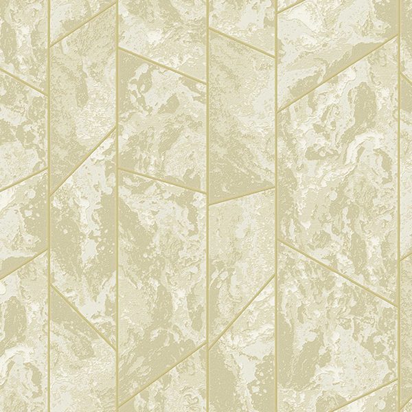 Ấn tượng đầu tiên mà Giấy Dán Tường Hàn Quốc Galaxy 7825-3 mang lại chính là họa tiết giả đá được thiết kế vô cùng khéo léo và hiện đại. Không chỉ đơn thuần tái hiện vân đá tự nhiên, mẫu giấy này còn sáng tạo với bố cục hình học độc đáo. Tông màu chủ đạo là trắng ngà dịu nhẹ, kết hợp hài hòa cùng các sắc độ vàng kem ấm áp và xám nhạt tinh tế. Sự pha trộn màu sắc này tạo nên hiệu ứng vân đá cẩm thạch (marble) hoặc đá tự nhiên có chiều sâu, mềm mại và sống động như thật. Các mảng đá cách điệu được tạo hình đa giác, chủ yếu là hình thang và hình chữ nhật, sắp xếp một cách có chủ ý theo chiều dọc. Những đường viền mảnh màu vàng kem hoặc be nhạt phân chia các khối này không chỉ tạo điểm nhấn thị giác mà còn gợi liên tưởng đến kỹ thuật ốp đá nghệ thuật trong kiến trúc đương đại. Bố cục này không chỉ mang tính nghệ thuật cao mà còn có tác dụng “ăn gian” chiều cao cho căn phòng, tạo cảm giác không gian trở nên cao ráo và thoáng đãng hơn. Bề mặt giấy có cảm giác mờ mịn khi chạm vào, nhưng hiệu ứng thị giác của vân đá lại mang đến cảm giác có chiều sâu, như những vân chìm tự nhiên trên đá thật. Đây là sự kết hợp hoàn hảo giữa vẻ đẹp tự nhiên của đá và tính trật tự, hiện đại của hình học, tạo nên một sản phẩm Giấy Dán Tường Giả Gạch Đá Bê Tông đầy ấn tượng và thanh lịch.