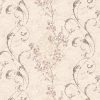 Trên nền sáng ấy, các họa tiết được điểm xuyết một cách khéo léo và hài hòa. Bạn sẽ thấy những cánh hoa anh đào hoặc hoa mơ cách điệu, nở rộ với sắc hồng phớt dịu dàng. Sắc hồng này không quá rực rỡ mà chỉ nhẹ nhàng, như một vệt màu lãng mạn trên bức tranh tổng thể. Xen kẽ với những bông hoa thơ mộng là các chi tiết trang trí dạng dây leo uốn lượn mềm mại và hoa văn cổ điển (damask) tinh xảo. Các họa tiết này mang tông màu xám tro nhạt hoặc beige phảng phất ánh bạc, tạo ra một hiệu ứng thị giác đa lớp đầy chiều sâu.