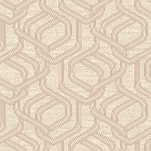 Về kiểu họa tiết, Giấy Dán Tường Hàn Quốc Mozen 73015-3 không đi theo lối mòn của vân gỗ hay hoa lá truyền thống. Thay vào đó, nó sở hữu một mẫu hoa văn hình học trừu tượng, được tạo nên từ những đường nét uốn lượn mềm mại, đan xen vào nhau một cách có chủ ý. Những đường nét này tạo thành các hình khối đa giác cách điệu, gợi liên tưởng đến cấu trúc mắt xích liên hoàn hoặc hình ảnh tổ ong được kéo dài và biến tấu. Đây là một mẫu thiết kế mang tính hiện đại cao, không mô phỏng tự nhiên mà tập trung vào sự sáng tạo của hình khối.