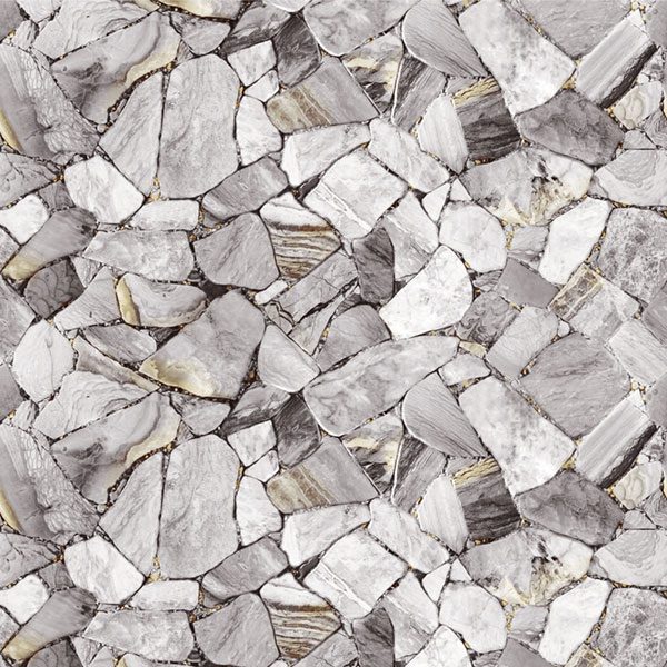 Điểm nhấn ấm áp được tạo nên bởi các mảng màu nâu vàng và nâu đất, xuất hiện một cách ngẫu nhiên trong các đường vân hoặc trên bề mặt một số phiến đá. Sắc nâu này cân bằng lại sự lạnh lẽo của tông xám, thêm vào đó nét mộc mạc, gần gũi với thiên nhiên. Xen kẽ còn có một chút sắc trắng ngà trên vài viên đá sáng màu, tạo nên sự tương phản nhẹ nhàng, giúp họa tiết không bị đơn điệu.