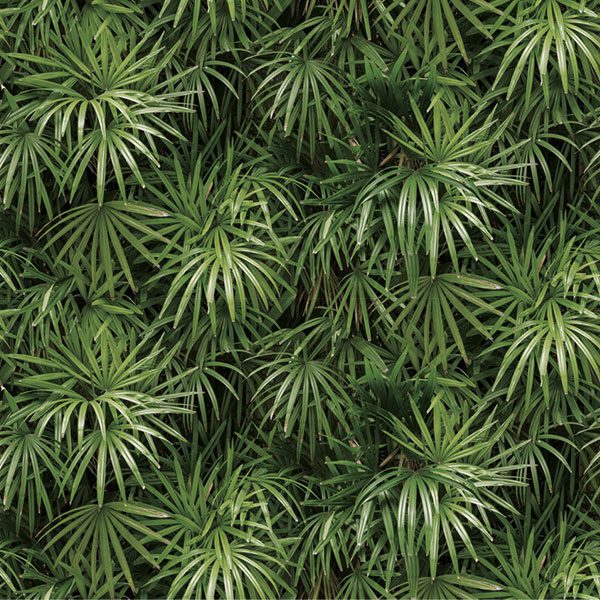 Điểm nhấn đặc biệt của Giấy Dán Tường Hàn Quốc Natural 88425-2 nằm ở kiểu vân họa tiết. Sản phẩm tái hiện một cách chân thực và tinh tế hình ảnh các cụm lá cây nhiệt đới, gợi liên tưởng đến lá cọ hay trúc đài loan (Lady Palm). Những tàu lá được thiết kế với độ cong, độ rủ mềm mại, xếp lớp chồng chéo lên nhau một cách tự nhiên, tạo nên một thảm thực vật um tùm và đầy sức sống. Các đường nét của lá thon dài, uyển chuyển, không hề mang cảm giác khô cứng hay nhân tạo như những họa tiết in thông thường. Họa tiết này lặp lại liên tục trên toàn bộ cuộn giấy, khi dán lên tường sẽ tạo thành một bức tranh lá liền mạch, không có điểm kết thúc rõ ràng, mang đến cảm giác bao trùm và hoàn toàn đắm chìm trong không gian xanh mát. Sự sống động và chân thực của họa tiết là yếu tố quan trọng giúp sản phẩm này nổi bật, khác biệt so với các loại Giấy Dán Tường Hoa Lá khác trên thị trường. Đây không chỉ là vật liệu trang trí tường đơn thuần, mà là một tác phẩm nghệ thuật giúp nâng tầm thẩm mỹ cho không gian sống của bạn.