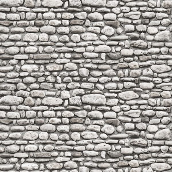 Điểm nhấn làm cho mẫu giấy này trở nên đặc biệt chính là sự xuất hiện xen kẽ của những viên đá mang sắc thái trắng ngà hoặc be nhạt. Những mảng màu sáng này phá tan sự đơn điệu của tông xám, mang đến cảm giác tươi mới và phản chiếu ánh sáng một cách tự nhiên, khiến bức tường trở nên sinh động và thu hút hơn. Đôi khi, bạn có thể tinh ý nhận ra một chút ánh nâu đất nhẹ nhàng ẩn hiện trong các kẽ đá hoặc trên bề mặt một vài viên, mô phỏng chân thực vẻ đẹp của đá đã trải qua phong sương, thời gian bào mòn. Kiểu vân đá cuội được tái hiện tỉ mỉ, mỗi viên đá mang một hình dáng, kích thước và sắc thái riêng biệt, được sắp xếp ngẫu nhiên một cách có chủ đích, tạo nên một tổng thể hài hòa và giàu tính nghệ thuật.