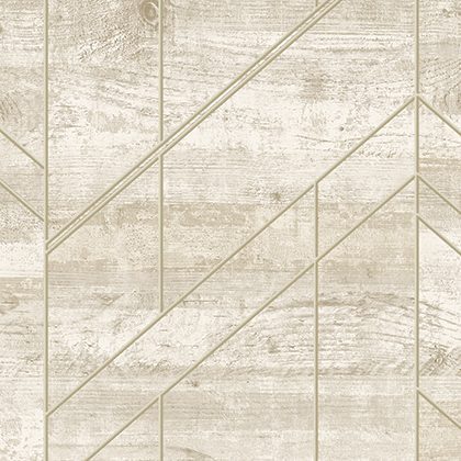 Điểm nhấn độc đáo và đầy cá tính của mã 85082-1 nằm ở các đường kẻ trang trí hình học. Những đường kẻ này có màu be nhạt hoặc vàng cát rất nhẹ, tạo nên sự tương phản tinh tế trên nền trắng ngà. Chúng được bố trí một cách có chủ ý, tạo thành các mảng họa tiết hình chữ V (chevron) năng động, các đường chéo và đường thẳng song song đan xen. Sự kết hợp này mang đến một cấu trúc thị giác hiện đại, phá vỡ sự đơn điệu của nền vân gỗ truyền thống, tạo nên một bức tường sống động và có chiều sâu.
