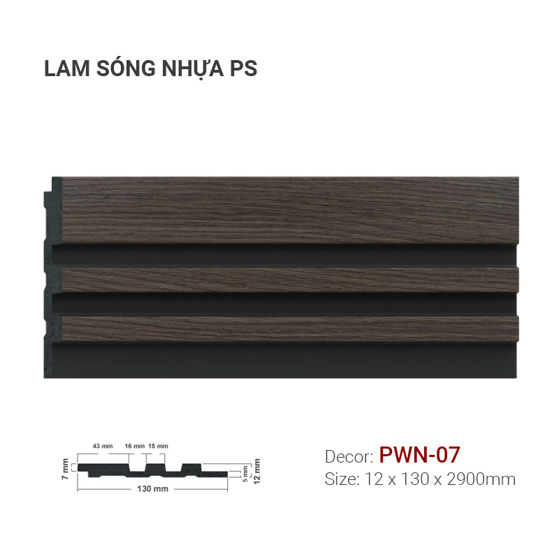 - Thi Công Nhanh Chóng: Với kích thước thanh dài và trọng lượng nhẹ, việc lắp đặt Lam Nhựa PS PWN-07 diễn ra nhanh chóng và dễ dàng hơn so với các vật liệu ốp truyền thống.