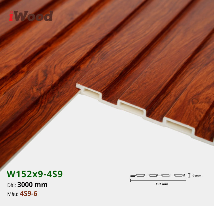 Để quý khách hàng dễ dàng hình dung và tính toán vật liệu, Vua Sàn Gỗ cung cấp thông số kỹ thuật chi tiết của Lam Nhựa PVC 3 Sóng Thấp W152x9 Iwood 4S9-6: