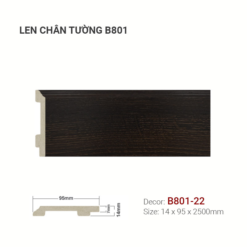Để giúp quý khách hàng dễ dàng tính toán và lựa chọn, dưới đây là các thông số kỹ thuật cơ bản của sản phẩm Len Tường B801-22: