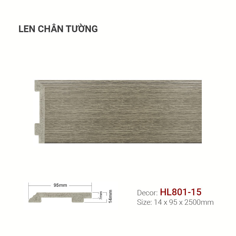 Len Tường HL801-15 thường được sản xuất từ các vật liệu công nghiệp phổ biến và ưu việt như HDF (High Density Fiberboard), MDF (Medium Density Fiberboard) phủ laminate/melamine, hoặc nhựa PS/PVC (gỗ nhựa composite). Mỗi loại vật liệu đều có những ưu điểm riêng, tuy nhiên, nhìn chung, các sản phẩm len chân tường hiện đại như HL801-15 đều được thiết kế để mang lại hiệu quả sử dụng tối ưu trong môi trường nội thất.