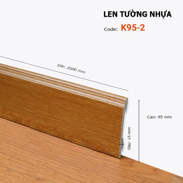 Kích thước thanh dài 2.5 mét là một lợi thế lớn, giúp giảm thiểu các mối nối trên tường, mang lại vẻ liền mạch và thẩm mỹ cao hơn khi lắp đặt trên các đoạn tường dài. Độ dày 15mm đảm bảo độ cứng cáp, không dễ bị biến dạng và khả năng bảo vệ chân tường hiệu quả trước các tác động vật lý. Với các thông số này, Len Tường K95-2 đáp ứng tốt các yêu cầu kỹ thuật và thẩm mỹ cho việc hoàn thiện nội thất hiện đại.