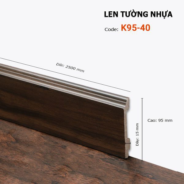 - Len Tường K95-40 có phù hợp với sàn gỗ tự nhiên không? Có, tông màu nâu đậm và vân gỗ tự nhiên của Len Tường K95-40 rất dễ dàng kết hợp với cả Sàn Gỗ Tự Nhiên và sàn gỗ công nghiệp.