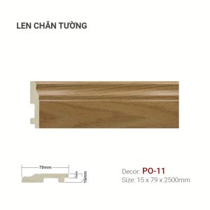 - Len Tường PO-11 phù hợp với loại sàn nào? Sản phẩm phù hợp với nhiều loại sàn khác nhau như Sàn Gỗ Công Nghiệp, Sàn Gỗ Tự Nhiên Solid, Sàn Nhựa SPC, sàn gạch, sàn đá…