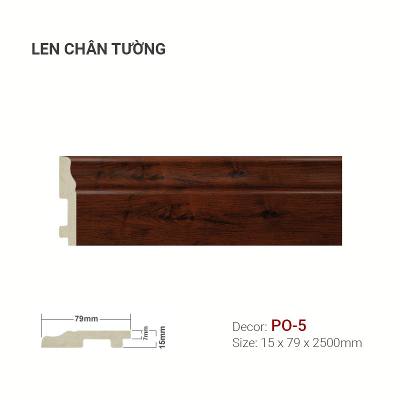 - Len Tường PO-5 có phù hợp với mọi loại sàn không? Với màu sắc và vân gỗ đa dạng, Len Tường PO-5 có thể kết hợp tốt với nhiều loại sàn khác nhau, từ Phụ Kiện Sàn Gỗ đến Phụ Kiện Sàn Nhựa và gạch.