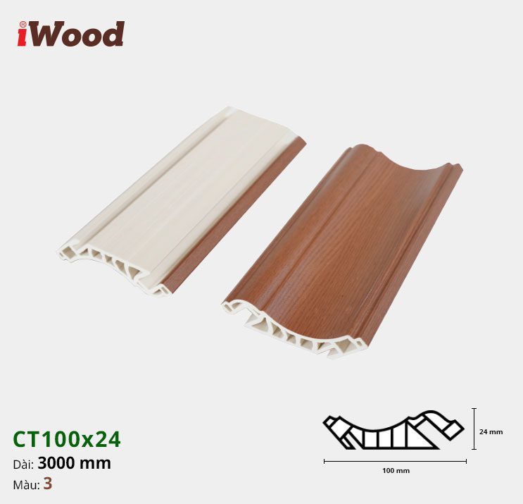 Sản phẩm Nẹp Nhựa Cổ Trần Iwood CT100x24-3 được sản xuất với quy cách tiêu chuẩn, đảm bảo sự đồng nhất và tiện lợi trong thi công: