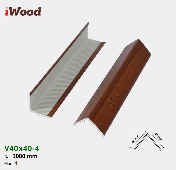 Nẹp Nhựa Iwood V40-4 được thiết kế với hình dạng chữ V, kích thước 40x40mm, lý tưởng để bo các góc vuông 90 độ. Cấu tạo từ chất liệu nhựa cao cấp, sản phẩm thừa hưởng nhiều ưu điểm nổi bật của dòng vật liệu này. Không giống như gỗ tự nhiên dễ bị mối mọt, cong vênh hay ẩm mốc, nẹp nhựa có khả năng kháng nước tuyệt đối, chống ẩm mốc hiệu quả, rất phù hợp với điều kiện khí hậu nóng ẩm tại Việt Nam. Độ bền màu cao giúp nẹp giữ được vẻ đẹp ban đầu theo thời gian, không bị phai màu hay bạc màu dưới tác động của ánh sáng. Bề mặt chống trầy xước tốt, dễ dàng vệ sinh chỉ với khăn ẩm, giúp duy trì vẻ sạch sẽ và mới mẻ cho không gian.