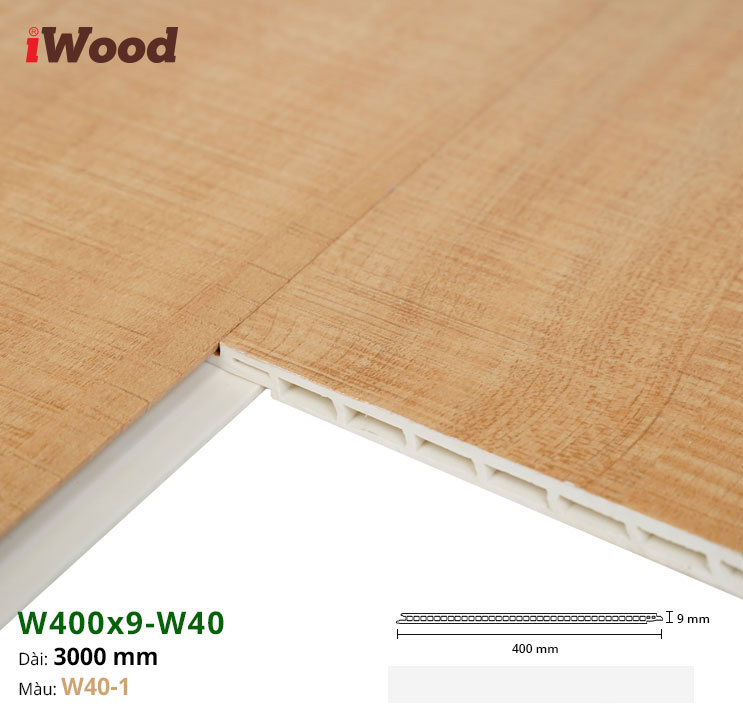 Để giúp quý khách hình dung rõ hơn về sản phẩm Nhựa PVC Vân Gỗ W400x9 Iwood W40-1, dưới đây là các thông số kỹ thuật cơ bản: