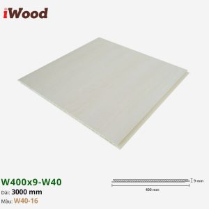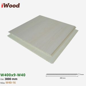 Để giúp quý khách hàng dễ dàng hình dung và tính toán vật tư, dưới đây là các thông số kỹ thuật cơ bản của sản phẩm Nhựa PVC Vân Gỗ W400x9 Iwood W40-16: