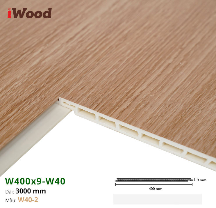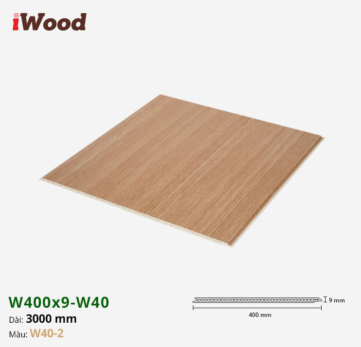 Sản phẩm Nhựa PVC Vân Gỗ W400x9 Iwood W40-2 được sản xuất với quy cách tiêu chuẩn, tối ưu cho việc lắp đặt và sử dụng trong các không gian nội thất: