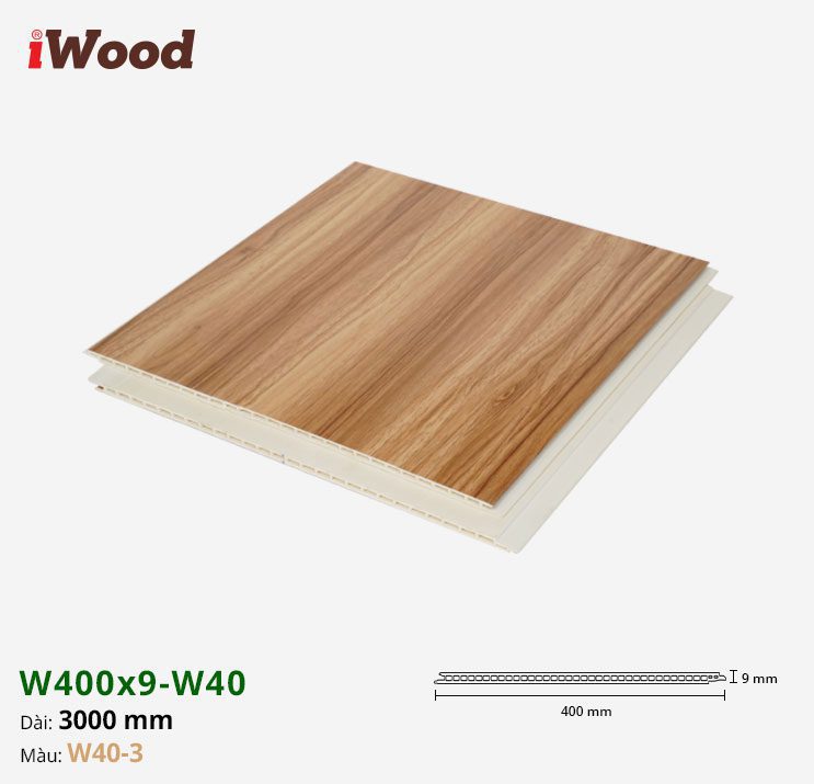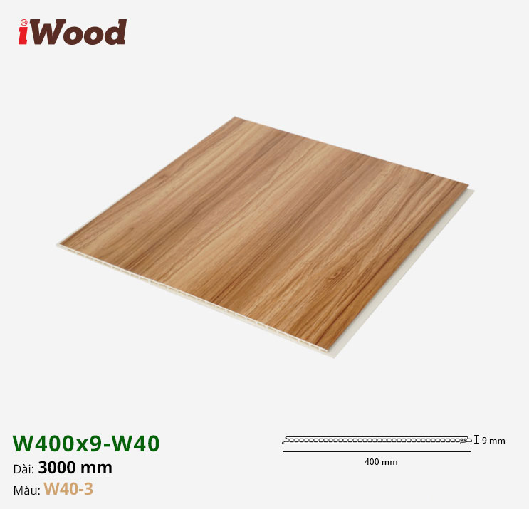 - Tên sản phẩm: Nhựa PVC Vân Gỗ W400x9 Iwood W40-3