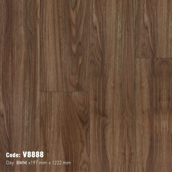 - Thẩm Mỹ Cao: Với tông màu nâu ấm và vân gỗ mô phỏng Sàn Gỗ Óc Chó (Walnut) tinh tế, V8888 dễ dàng hòa nhập và nâng tầm vẻ đẹp cho mọi phong cách nội thất, từ hiện đại, cổ điển đến tân cổ điển hay phong cách ấm cúng.