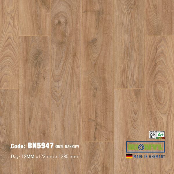Sàn Gỗ Binyl Narrow BN5947 được sản xuất theo tiêu chuẩn chất lượng của Đức, đảm bảo độ bền và hiệu suất sử dụng cao. Dưới đây là các thông số kỹ thuật cơ bản của sản phẩm: