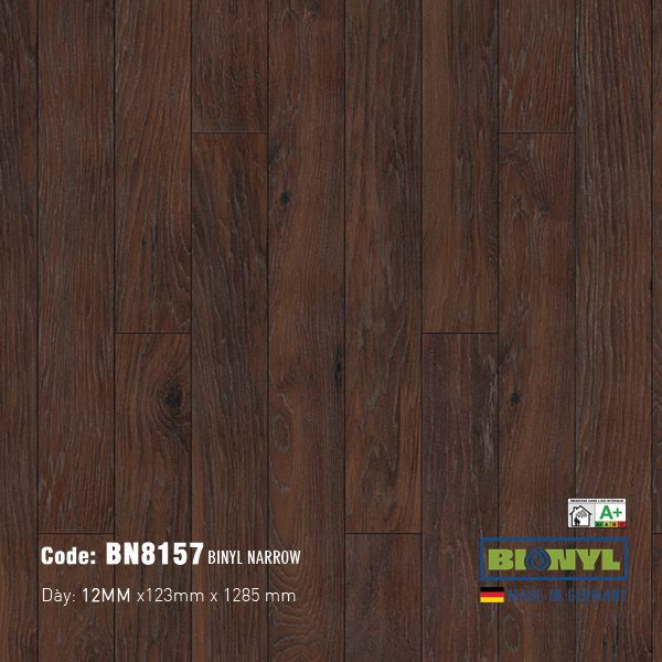 Màu nâu đậm có thể tạo cảm giác không gian nhỏ lại nếu phòng thiếu sáng. Tuy nhiên, nếu kết hợp với hệ thống chiếu sáng tốt (cả tự nhiên và nhân tạo) và nội thất, tường nhà có màu sáng, Sàn Gỗ Binyl Narrow BN8157 sẽ mang lại vẻ đẹp sang trọng, ấm cúng và có chiều sâu. - Sản phẩm này có phải là Sàn Gỗ Đức không?