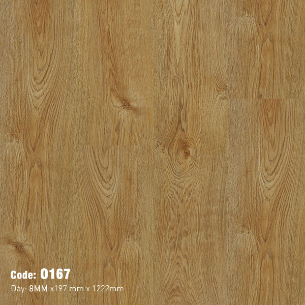 Khi chiêm ngưỡng Sàn Gỗ Dream Floor O167, ấn tượng đầu tiên đọng lại là tông màu vàng nâu trầm ấm và cuốn hút, tái hiện chân thực vẻ đẹp đặc trưng của gỗ sồi. Sắc vàng chủ đạo ở mức độ trung bình, không quá rực rỡ hay tối tăm, tạo nên sự cân bằng thị giác và cảm giác dễ chịu. Nền vàng này được điểm xuyết bởi những đường vân gỗ mềm mại mang sắc nâu nhạt, cùng với các mắt gỗ đặc trưng có tông màu nâu sẫm hơn. Sự kết hợp các sắc thái màu này tạo nên một tổng thể đa dạng, có chiều sâu, đôi khi còn phản chiếu một chút ánh cam nhẹ ở những khu vực vân dày hoặc quanh mắt gỗ, làm tăng thêm nét tự nhiên và sự ấm áp. Màu sắc này rất linh hoạt, có thể làm sáng bừng không gian thiếu sáng hoặc dịu đi sự gay gắt trong phòng nhiều ánh sáng tự nhiên.